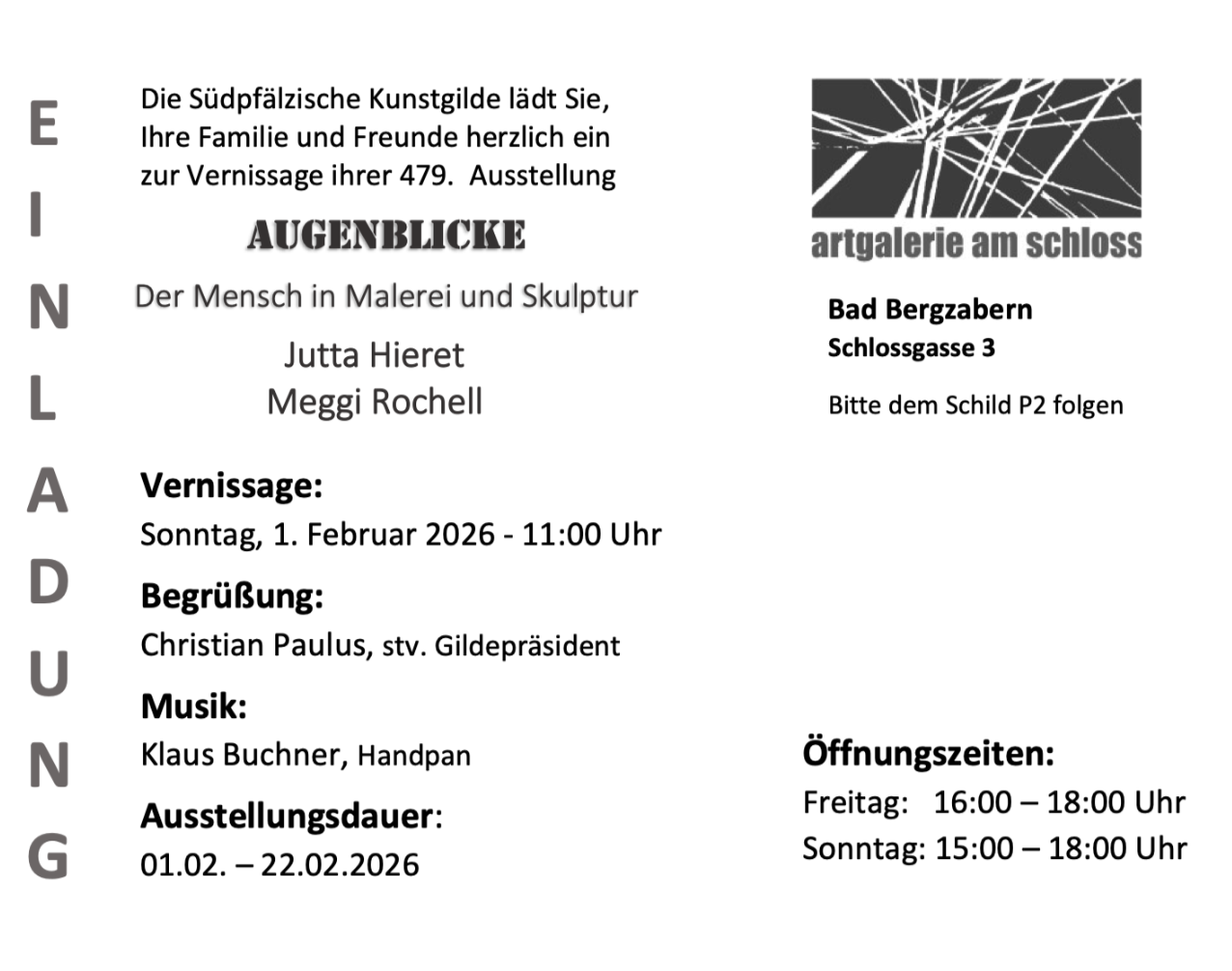 - Ort: ART Galerie am Schloss, Schlossgasse 3, Bad Bergzabern