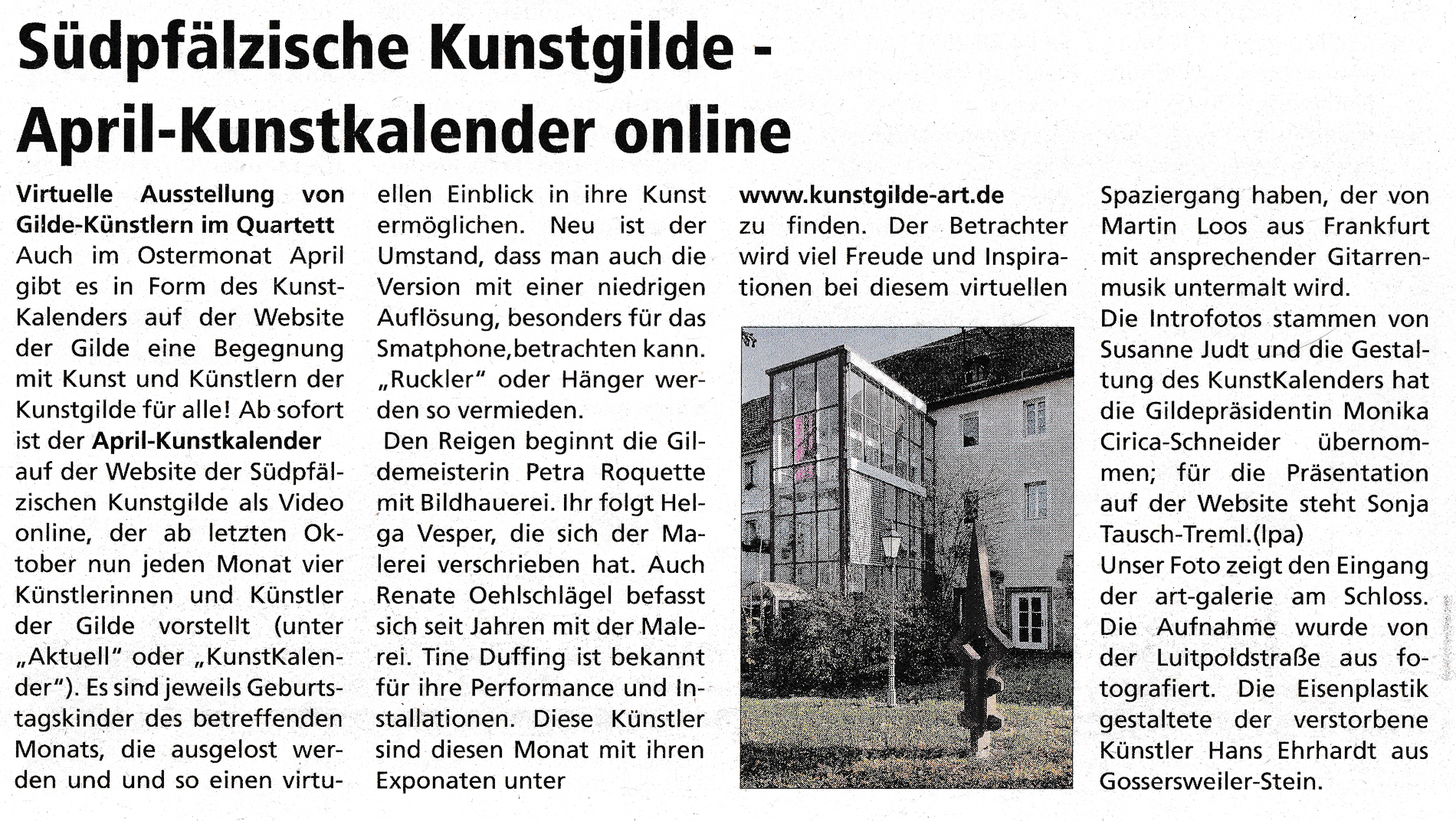 Kunstkalender April Die Musik ist von und mit Stegio Frame, alias Martin Loos.